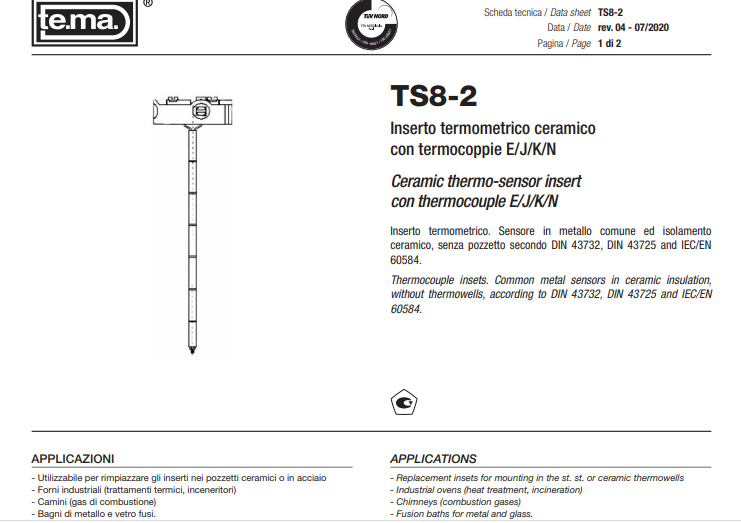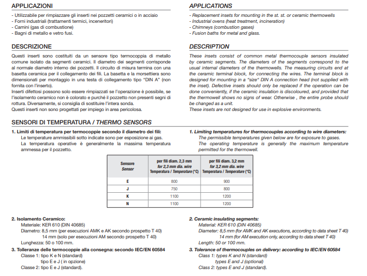 - CERAMIC THERMO-SENSOR INSERT CON THERMOCOUPLE E/J/K/N TYPE TS8-2