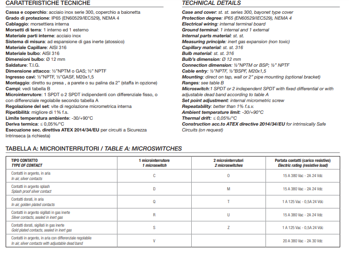 GAS EXPHANSION TYPE WEATHERPROOF TEMPERATURE SWITCHES SERIES TMS8